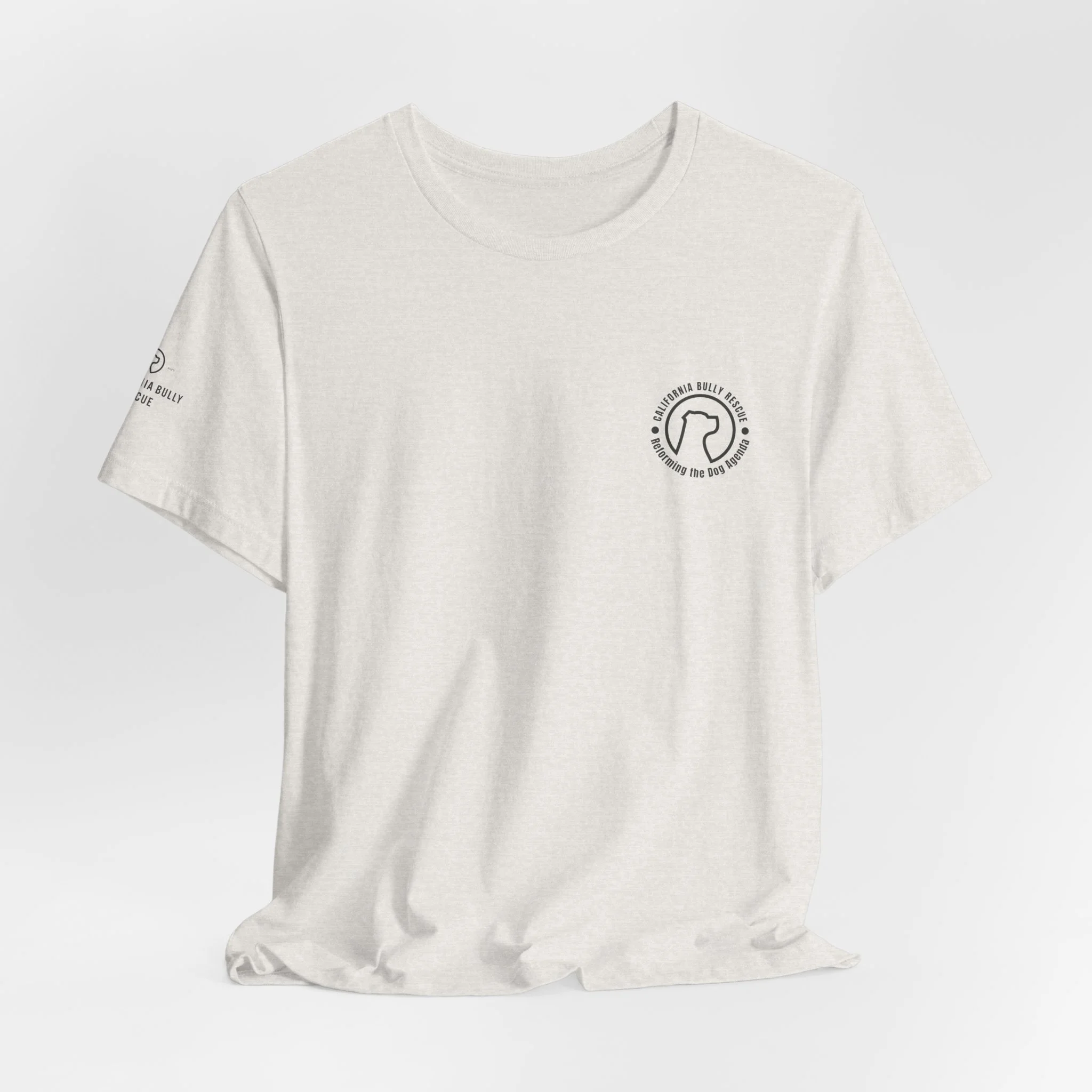 This lightweight jersey tee carries a quiet, honest message: compassion over stigma. Soft, breathable Airlume combed cotton gives it an easy drape that layers without fuss. On the back, an illustrated cluster of bully-type dogs sits beneath the line “DON’T BULLY / MY BREED,” a direct, empathetic statement that invites conversation rather than confrontation. A small circular emblem on the chest and a subtle sleeve mark keep the design cohesive and wearable. It feels like the kind of shirt you reach for when you want to represent animal advocacy in everyday life — on walks, at adoption events, or while volunteering — without shouting. The fit is casual and neat, the ribbed collar and side seams keep it looking sharp wash after wash, and the tear-away label keeps comfort front and center.