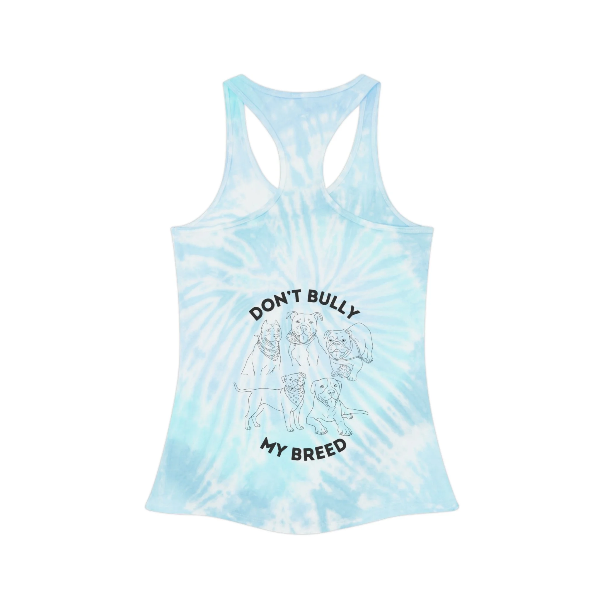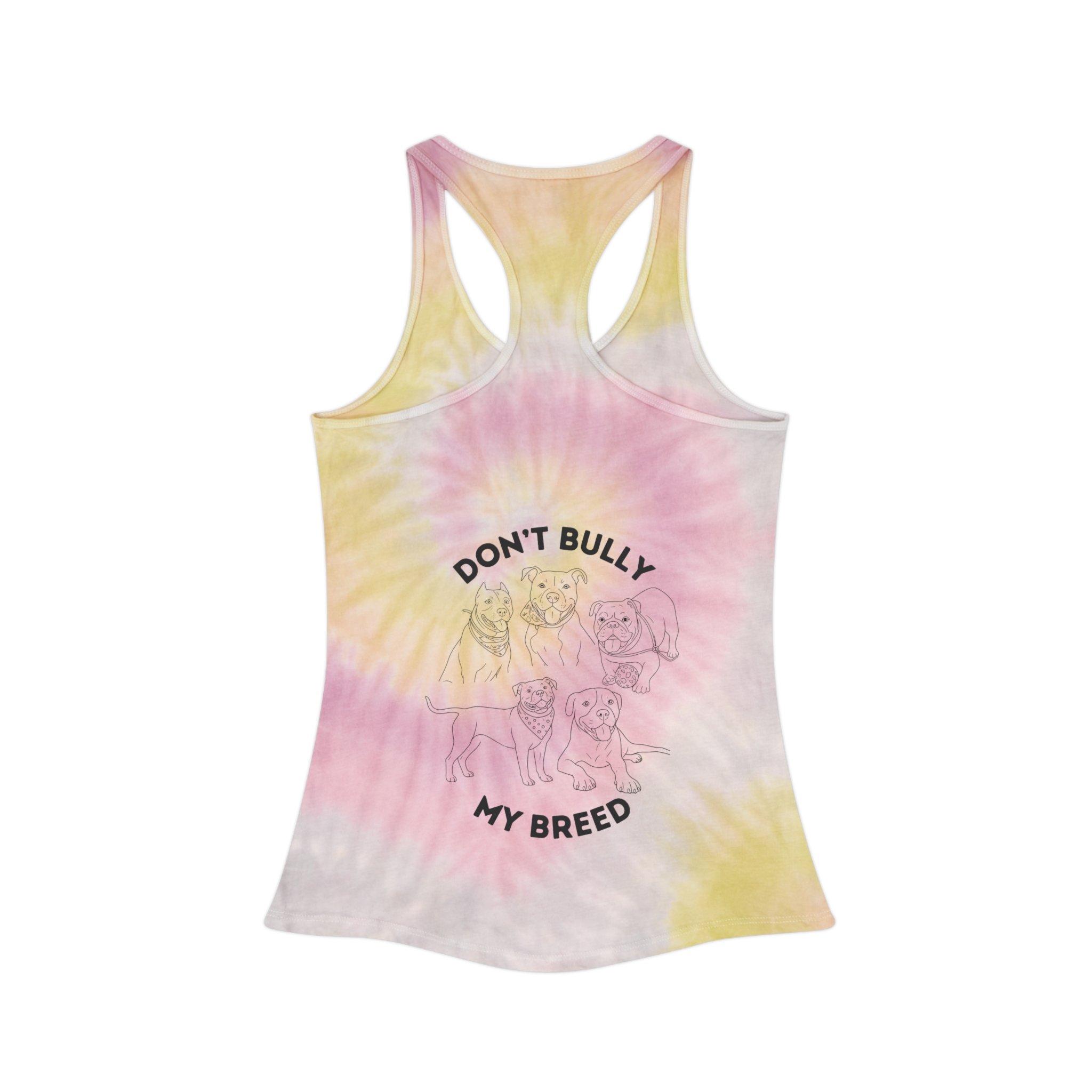 Tie-Dye Racerback Tank — "Don't Bully My Breed" Graphic